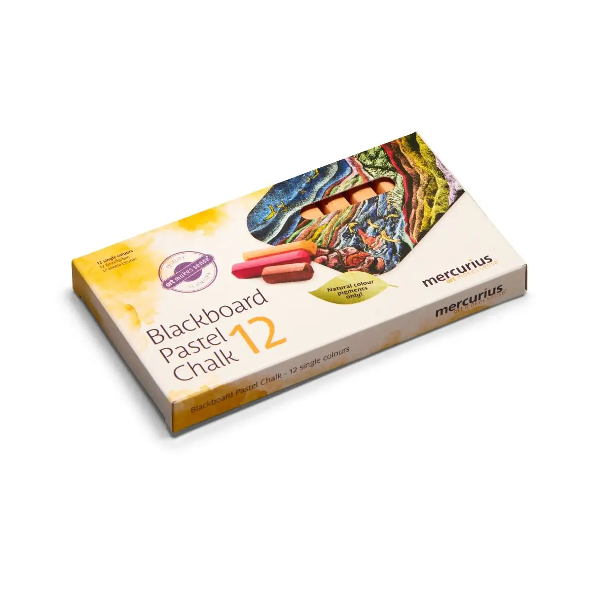 Nieodzowny element każdej szkoły waldorfskiej to ręcznie przygotowana przez nauczyciela ilustracja do bieżącej lekcji na szkolnej tablicy. Aby była ona piękna, nauczyciel potrzebuje do tego kredy z intensywnymi pigmentami. Mercurius oferuje aktualnie zestawy 16 kolorowe.