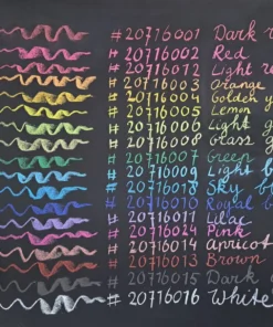 - W skład zestawu 16 kolorowego wchodzi: malina, cynober, pomarańcz, złota żółć, cytryna, jasna, leśna i butelkowa zieleń, jasny średni i ciemny błękit, lila, ciemny róż, beżowy, umbra, kasztan.